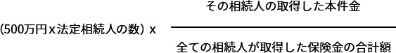 ・・・その相続人の取得した死亡保険金の金額 - 死亡保険金の合計額が保険金の非課税限度額を超える場合