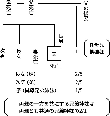 父母の一方を同じくする兄弟姉妹の相続分は父母の双方を同じくする兄弟姉妹の2分の1となる。